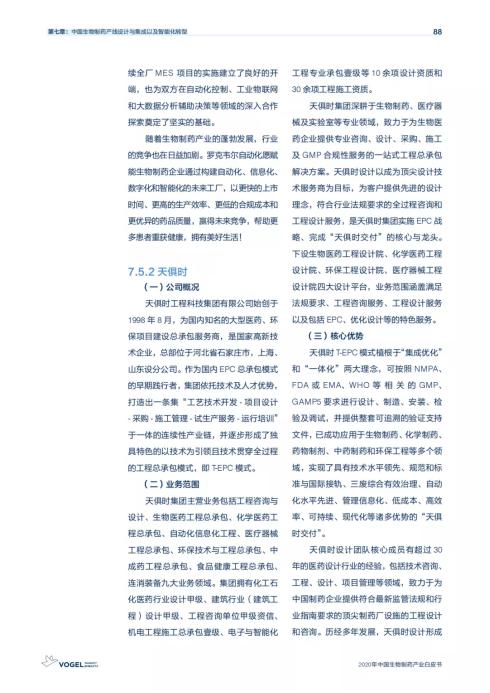 白皮書中在《中國生物制藥產(chǎn)線設計與集成以及智能化轉(zhuǎn)型》一章節(jié)中,選取天俱時集團為典型公司進行案例分析,肯定了天俱時在生物制藥產(chǎn)線設計與集成方面的相關優(yōu)勢及取得成果。